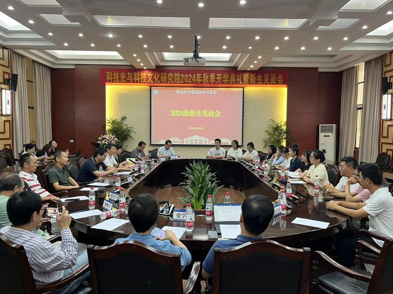 2024年9月24日下午,betway必威西汉姆联科技史与科技文化研究院 2024 年秋季学期开学典礼暨2024级新生师生见面会在国交处一楼大会议室隆重举行。出席此次会议有研究生院副院长郑慧教授、管理学院丁海斌教授、研究院资深教授万辅彬先生、学报编辑部黄祖宾编审、研究院全体教师以及在读硕博研究生。会议由研究院副院长邓环副教授主持。