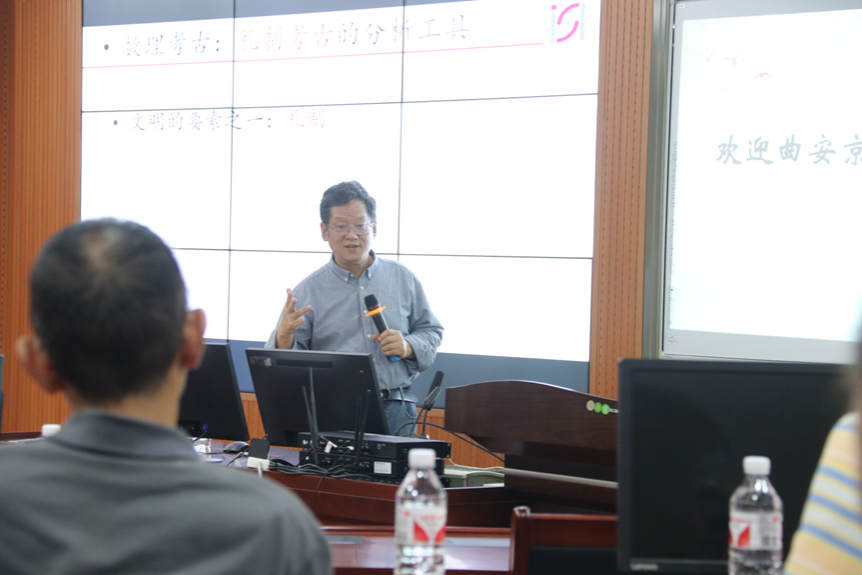 2024年11月11日晚上,西北大学科技史高等研究院院长、博士生导师曲安京教授受我院邀请,前来开展学术交流,在逸夫楼303会议室作题为“礼制与数理考古:北魏孝文帝构建坝顶圜丘的故事”讲座,讲座由我院汪常明教授主持。