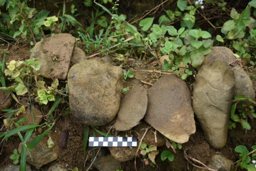 遗址断面上出现的石制品