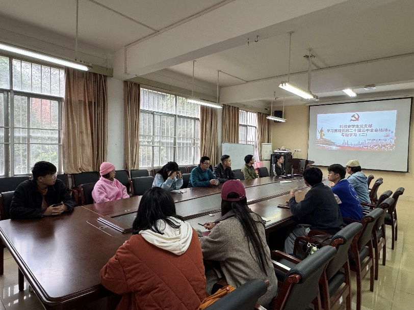 2024年12月10日下午,科技史党支部学生党小组在求是楼209召开“学习贯彻党的二十届三中全会精神”党课活动,科技史党支部学生党员参加了此次党课活动。