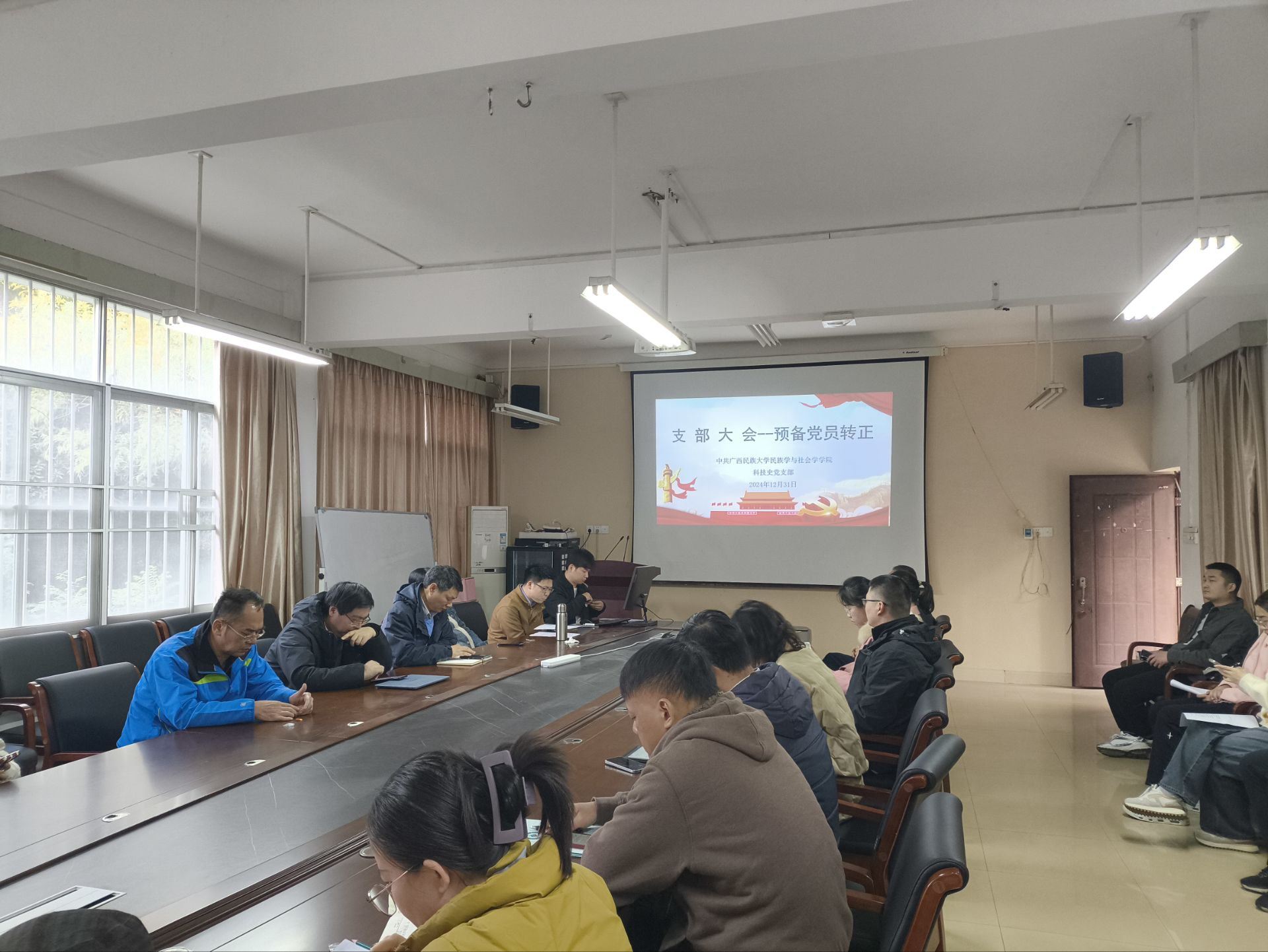 为进一步推进学生党员队伍建设,2024年12月31日下午四点半,科技史党支部在求是楼209会议室召开了预备党员转正大会。会议由党支部副书记曾仙赐老师主持。本次会议应到正式党员与预备党员32人,请假1人,实到31人,与会人数达到党员发展大会召开所需人数要求。